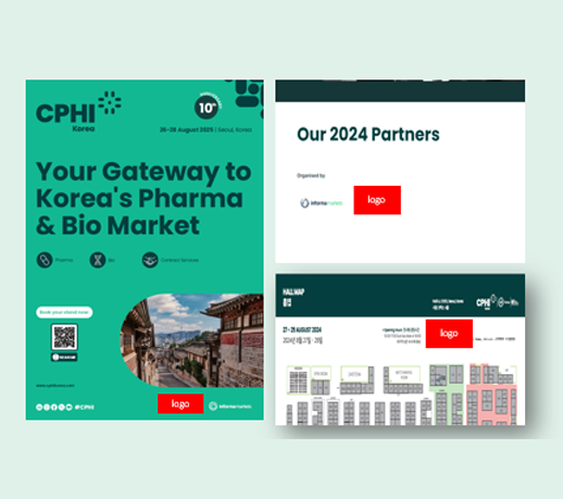 전시회 브로셔, 웹사이트, 홀맵, 현장 현황판 로고 삽입