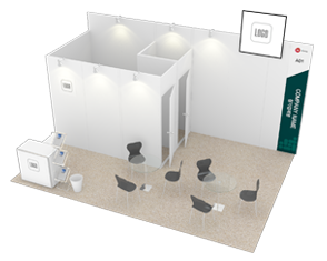 부스벽면판넬, 회사명판, 카펫, 조명, 전기 2KW/콘센트 2개, 상담테이블 2개+의자 6개, 안내데스크 1개(로고삽입)+스툴 1개, 휴지통 1개, 창고, 카탈로그 홀더 1개, 디렉토리 및 웹사이트 등재 *모든 그래픽 파일은 참가업체가 제공 * 24m² 이상 미팅룸 제공 |