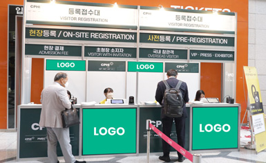 전시회 및 컨퍼런스 등록대 앞면 (행사배너와 교차 부착)에 자사 로고 노출 3개사 한정